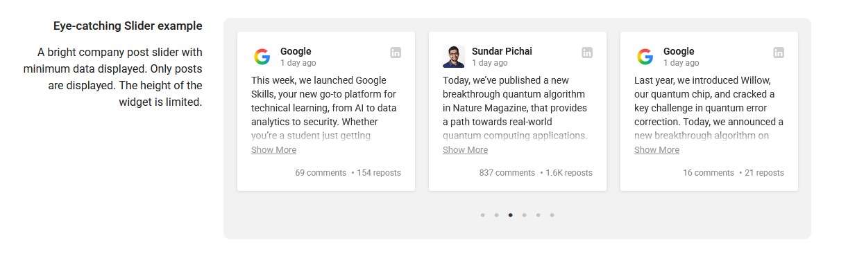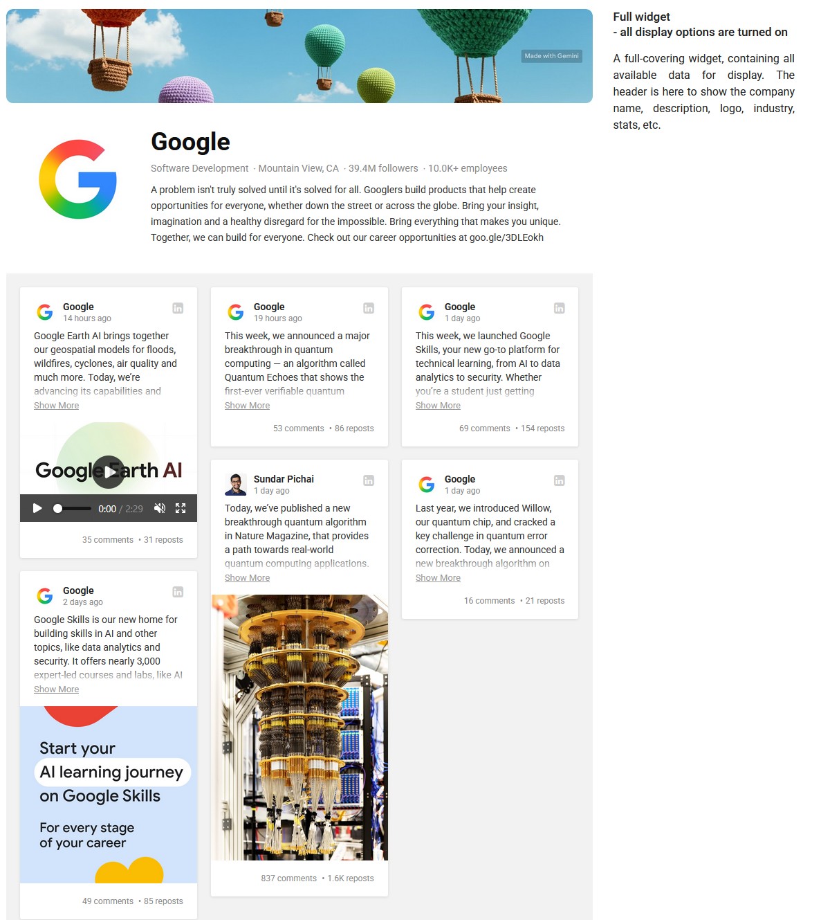 The feed syncs automatically with LinkedIn, ensuring your website always shows the most recent company updates.