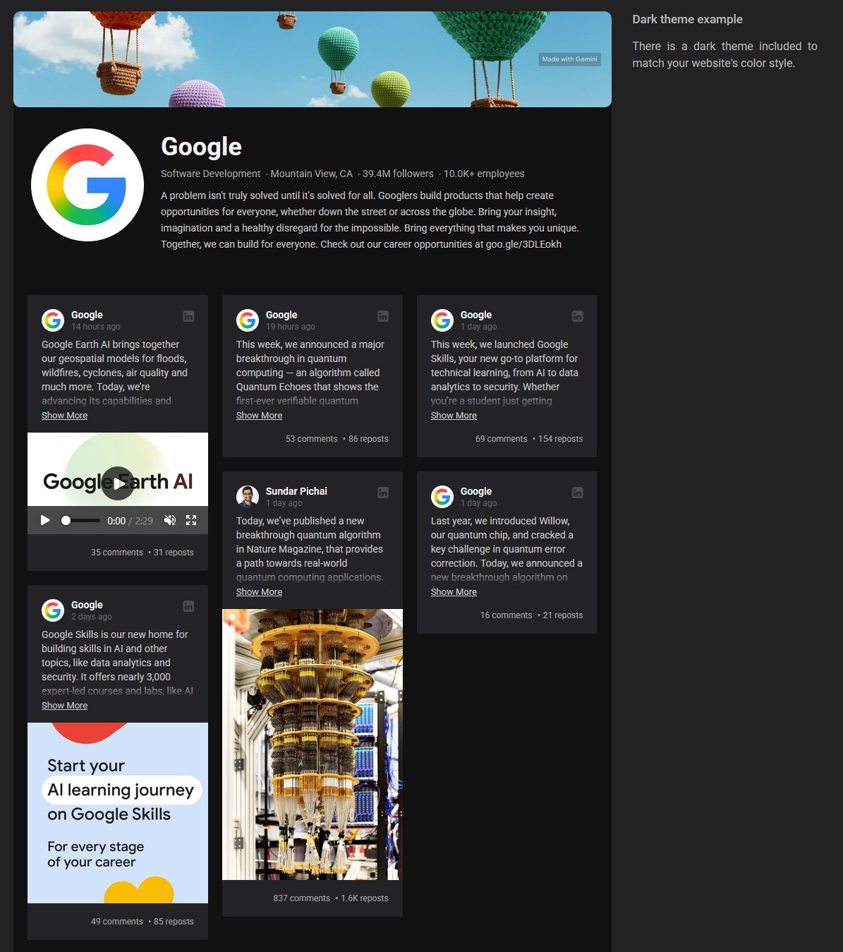 Optimized for performance, ensuring that your LinkedIn feed loads quickly without slowing down your website.